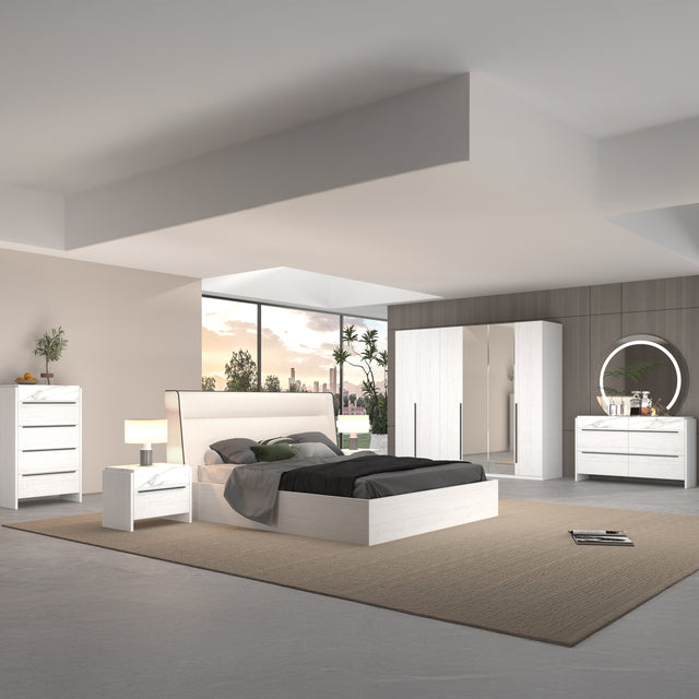 غرفة النوم أورينا تجمع بين التصميم العصري والفخامة العملية، بخامات الميلامين عالية الجودة التي تمنحك متانة تدوم لسنوات. ألوانها الهادئة مع لمسات الخشب الطبيعي تضفي أجواء دافئة ومناسبة لمختلف تصاميم غرف نوم عصرية. إنها الخيار المثالي لكل من يبحث عن غرفة نوم مودرن مكتملة التفاصيل وملائمة كـ غرفة نوم رئيسية أو غرفة نوم