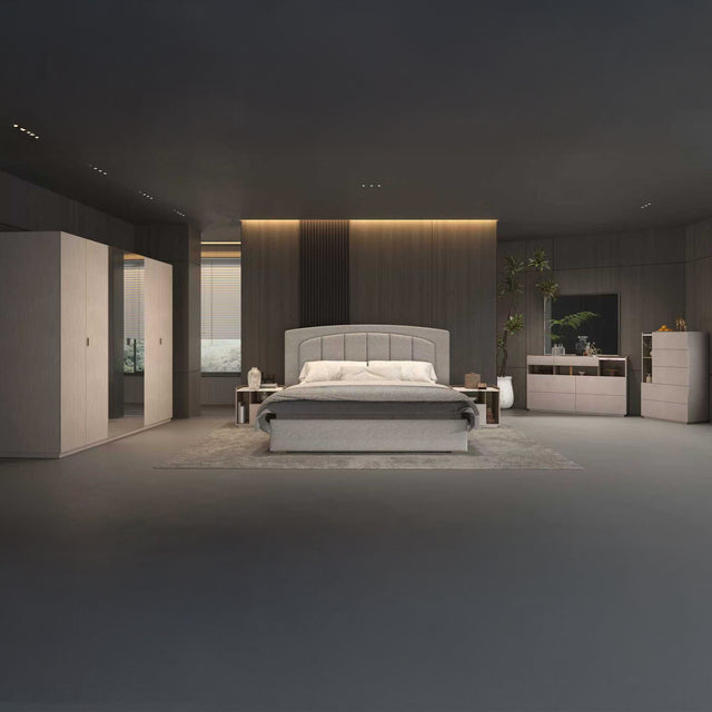 مع وجود سرير واسع، تسريحة مع مراية كبيرة، خزائن ملابس عملية، وطاولات جانبية عصرية، تمنحك سافينا تجربة متكاملة من حيث الراحة والتنظيم. إنها بالفعل غرفة نوم كاملة مثالية للمنزل العصري، وتلبي احتياجات مختلف أفراد العائلة بما في ذلك غرف نوم أو كغرفة رئيسية أنيقة.