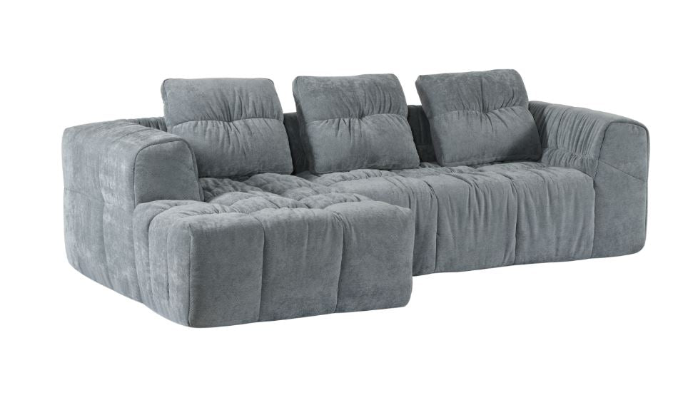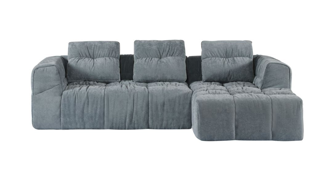 كنبة مميزة بتصميم فاخر ومريح باللون الأزرق الرمادي، تتميز بوسائد كبيرة توفر راحة استثنائية عند الجلوس لفترات طويلة. حجمها المناسب يجعلها مثالية للغرف الواسعة، كما أن خامتها القوية تضمن الاستخدام اليومي المستمر مع الحفاظ على الشكل العصري الأنيق.