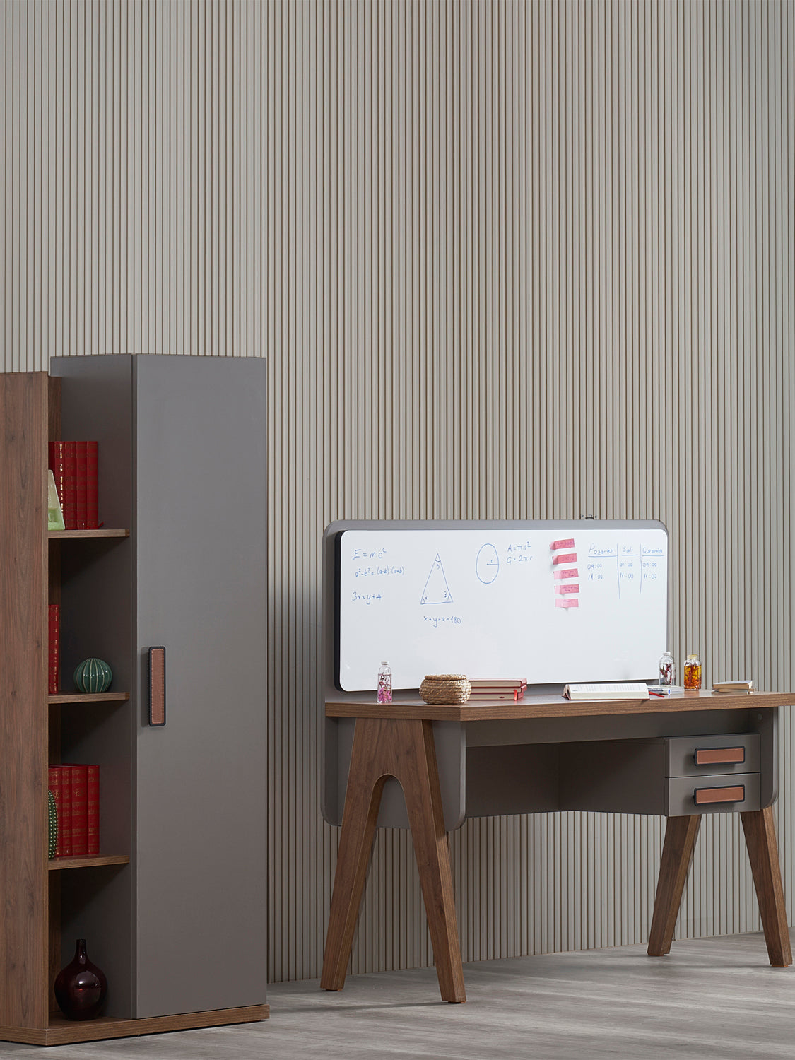 طاولة زينة ومرآة عملية وذات تصميم متناسق مع باقي الغرفة، تعزز من مساحة الغرفة وتعطي تنظيم وترتيب للغرفة، مع إحساس بالاتّساع