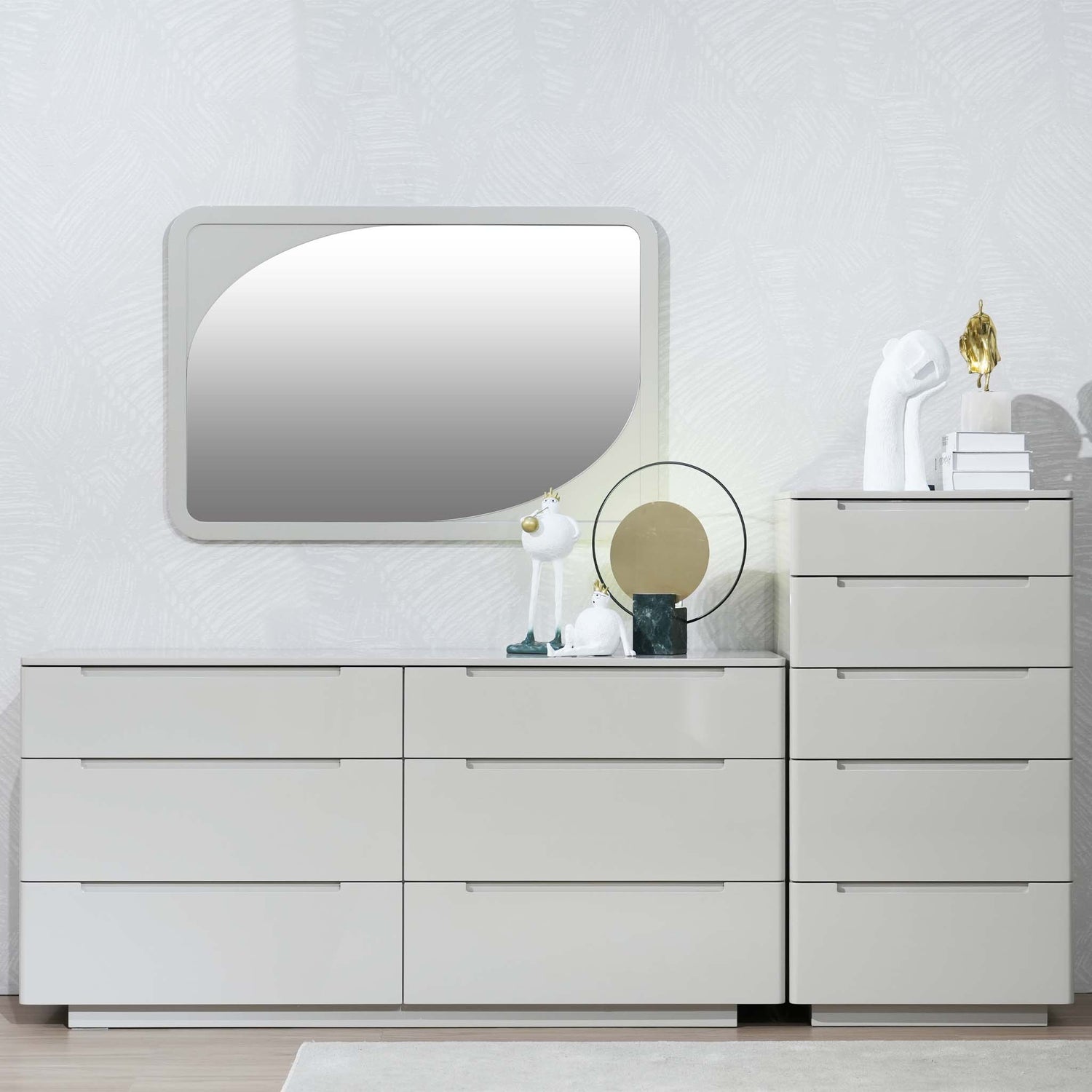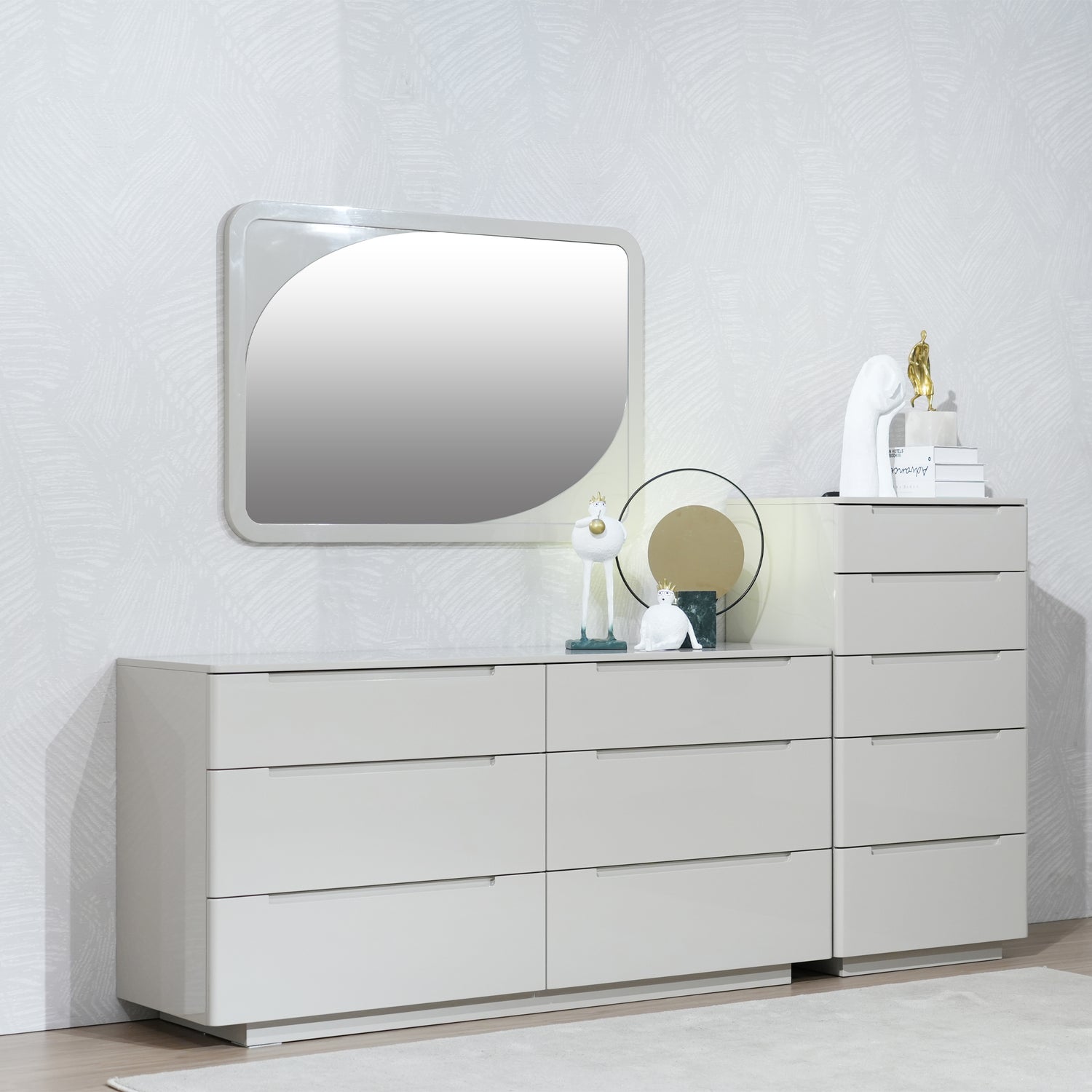 تسريحة بتصميم أنيق يجمع بين اللمسات الحديثة والتفاصيل الراقية. مصنوعة من خشب بتشطيب عاجي لامع يضفي فخامة ناعمة ويعكس الضوء بطريقة تمنح الغرفة إشراقًا دافئًا. مزودة بأدراج بإغلاق ناعم لتخزين الإكسسوارات والمستحضرات اليومية بأناقة. سطحها العملي وتصميمها الانسيابي يجعلها قطعة مثالية تضيف الجمال والتنظيم إلى أي غرفة نوم راقية.
