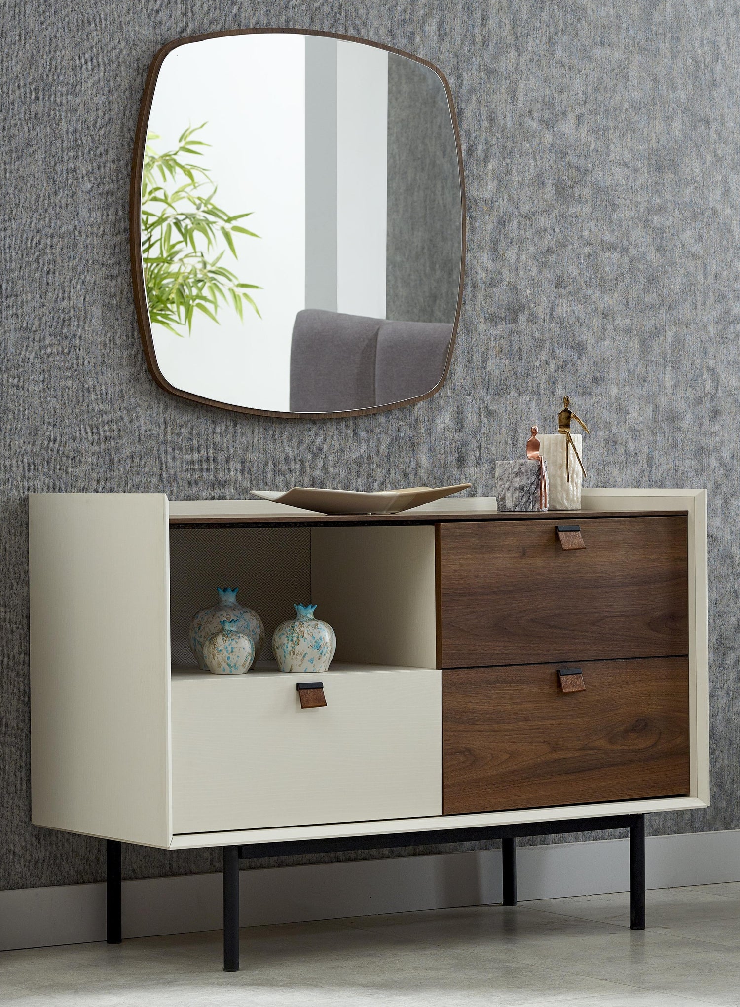 تسريحة ديرون مع مراية باللون الرمادي والخشبي