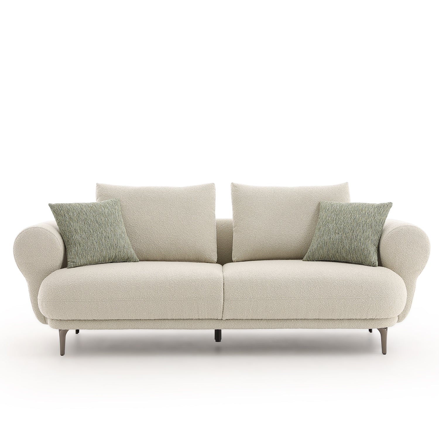 كنبة ثلاثية واسعة مثالية للجلسات العائلية أو استقبال الضيوف. مغطاة بقماش أنيق ناعم الملمس، مع إطار متين من الخشب يضمن المتانة وأرجل عملية تعزز الثبات. الحشوة من إسفنج متوسط الكثافة تمنح راحة مثالية للاستخدام اليومي.