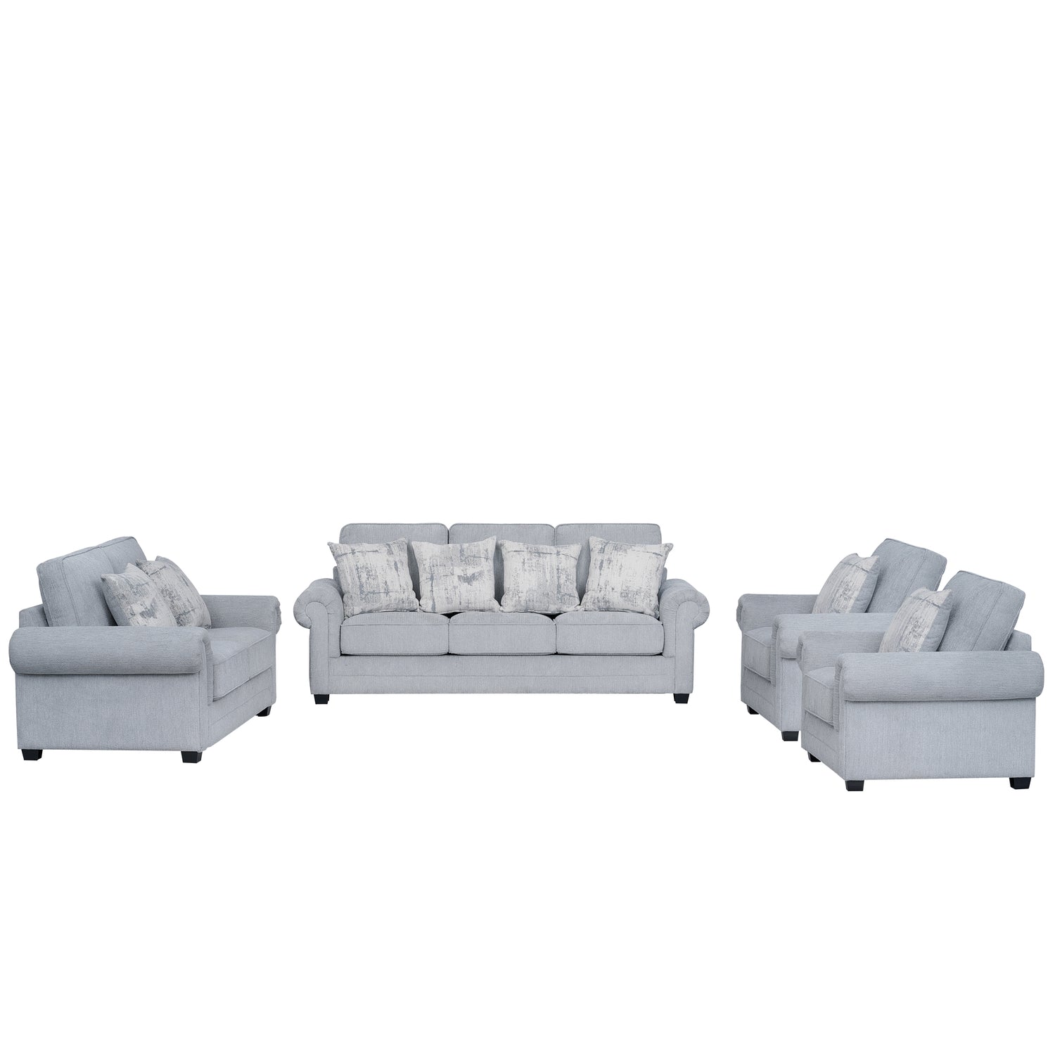الكنب الثلاثي هو القطعة الأبرز في هذا الطقم الفاخر بتصميمه المتوازن وأناقته الرفيعة.