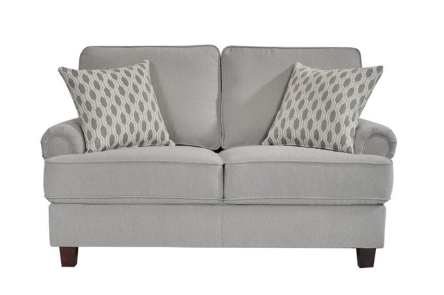 كنبة ثنائية أنيقة تجمع بين الراحة والفخامة في تصميم متوازن يناسب مختلف أنماط الديكور. تأتي بتلبيسة قماشية فاخرة باللون الرمادي الأنيق الذي يعكس الهدوء والرقي، وتزينها وسائد مزخرفة تضيف لمسة عصرية نابضة بالحياة لتجعلها قطعة مميزة في غرفة المعيشة.