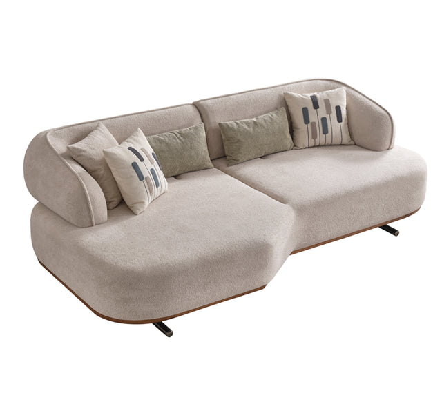 الهيكل المصنوع من الخشب الرقائقي والجاف، مع قواعد معدنية مطلية بلون معدني أنيق، يمنحها مظهراً عصرياً وثباتاً يدوم لسنوات. إنها الخيار الأمثل كقطعة رئيسية في طقم كنب مودرن فاخر.