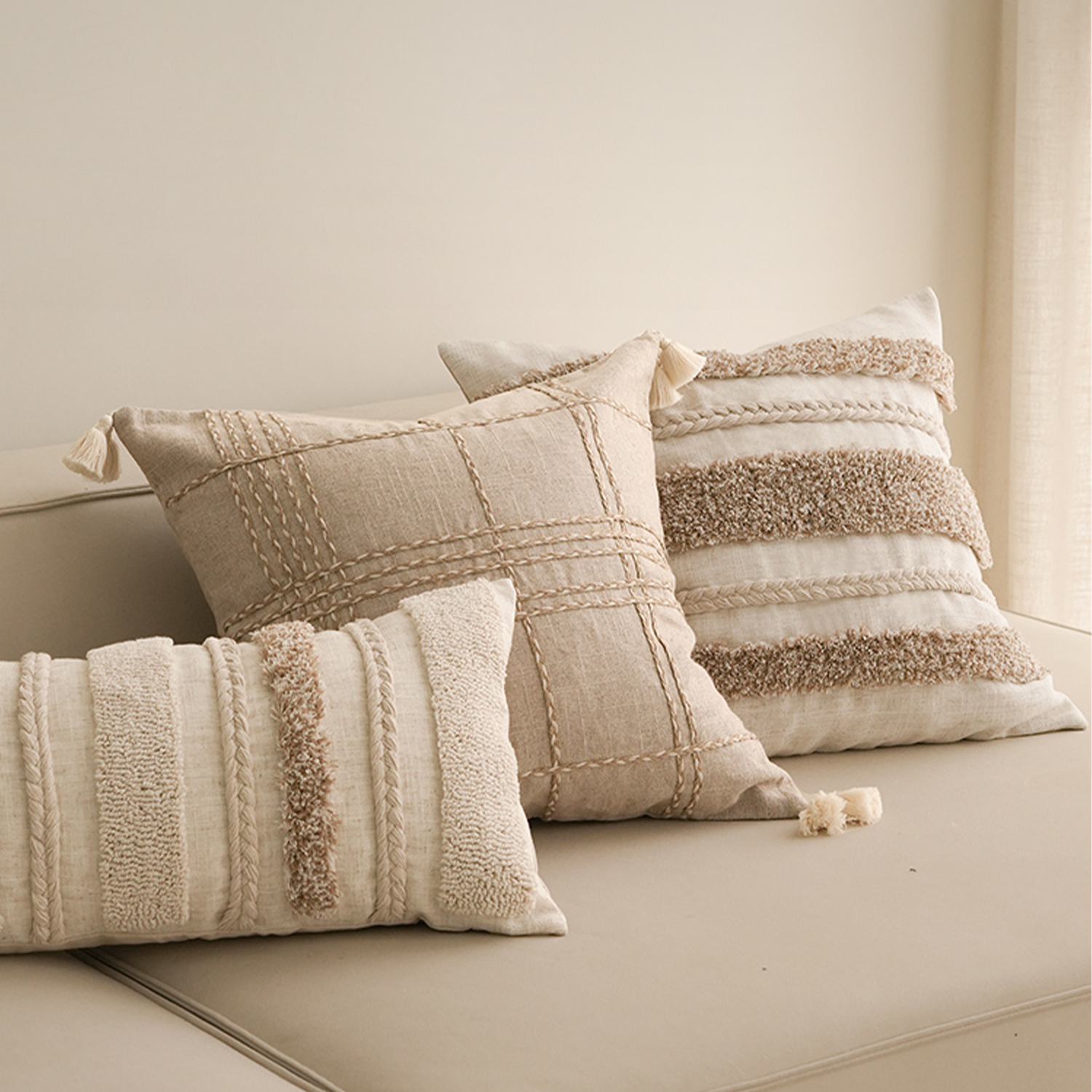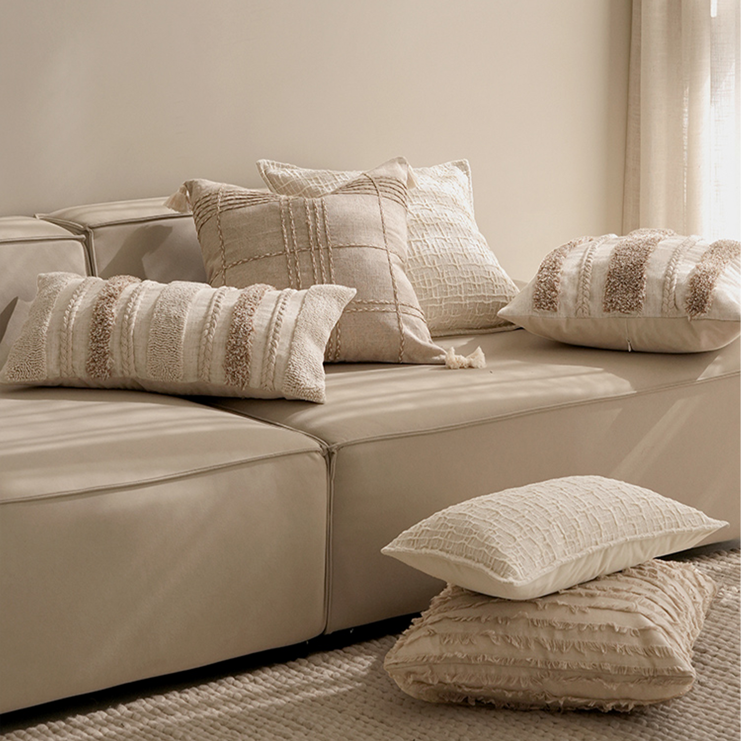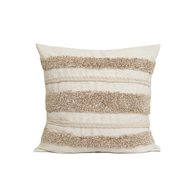وسادة فاخرة مصنوعة من 90% بوليستر 10% كتان تضفي لمسة من الفخامة والرقي على أي مساحة. بتصميمها العصري وملمسها الفاخر، تعكس الذوق الرفيع لمن يبحث عن التميز في تفاصيل منزله. تضيف لمسة جمالية تكمّل الأثاث وتمنح الغرفة طابعًا أنيقًا ومريحًا. خامتها المميزة تمنحها نعومة تدوم ومظهرًا يعبّر عن الجودة العالية. تجمع بين التصميم الجذاب والمتانة لتكون قطعة أساسية في ديكورك اليومي. تعكس الفخامة الهادئة والراحة المطلقة التي تمنح المكان طابعًا فريدًا من نوعه.