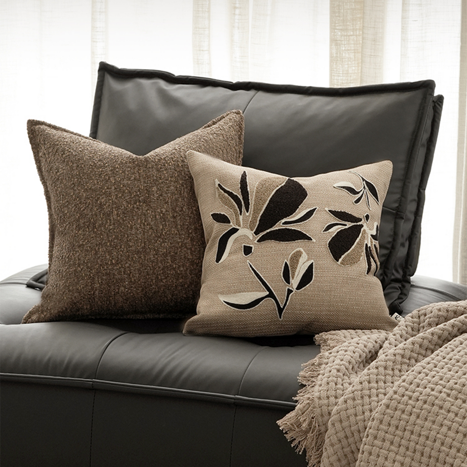 وسادة راقية تجمع بين فخامة الخامة وروعة التفاصيل الدقيقة. مصنوعة من 100%بوليستر بعناية لتكون رمزًا للأناقة والراحة. تمنح الغرفة لمسة دافئة من الجمال والتوازن بين الفخامة والعملية. تضيف عمقًا بصريًا ولمسة من الأناقة الهادئة إلى أركان المنزل. تصميمها الأنيق يجعلها مناسبة لجميع المواسم ومختلف المساحات. اختيار مثالي لكل من يسعى لإضافة طابع فخم ومتناسق إلى ديكور منزله.