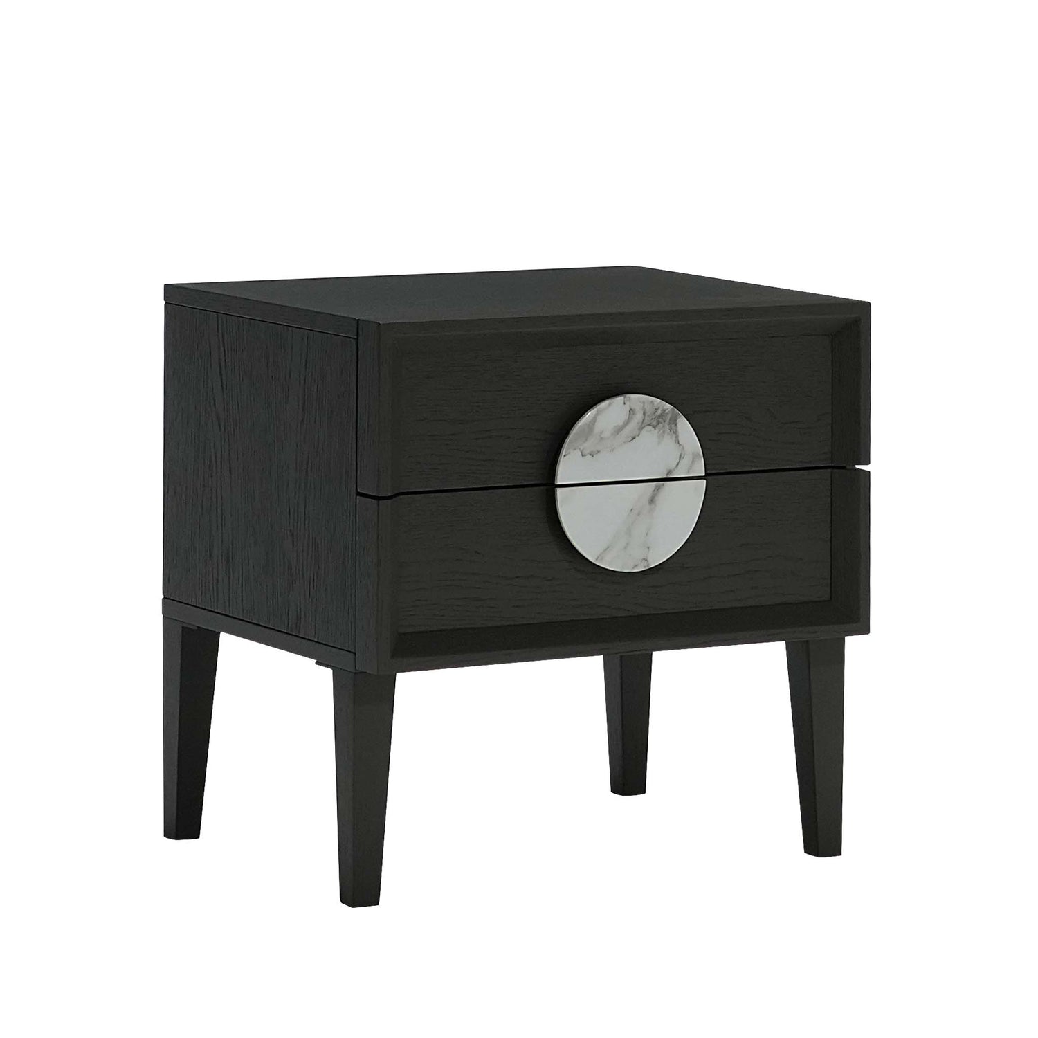 كومدينة فخمة تمزج بين خشب البلوط الغني والسطح الرخامي اللامع بلون رمادي فاخر. تحتوي على درج بإغلاق ناعم ومقابض أنيقة تضيف لمسة من الفخامة. الأرجل الخشبية الصلبة تمنحها مظهرًا متينًا وأناقة طبيعية، ما يجعلها مثالية لغرف النوم الراقية التي تجمع بين الأصالة والعصرية.