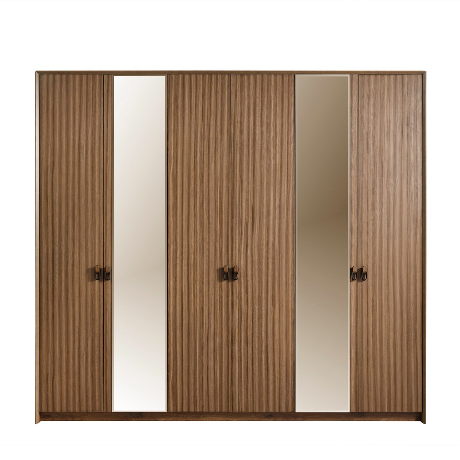 خزانة ملابس بستة أبواب بلون الجوز الدافئ، يتميز بتصميم واسع وعصري يناسب مختلف المساحات.