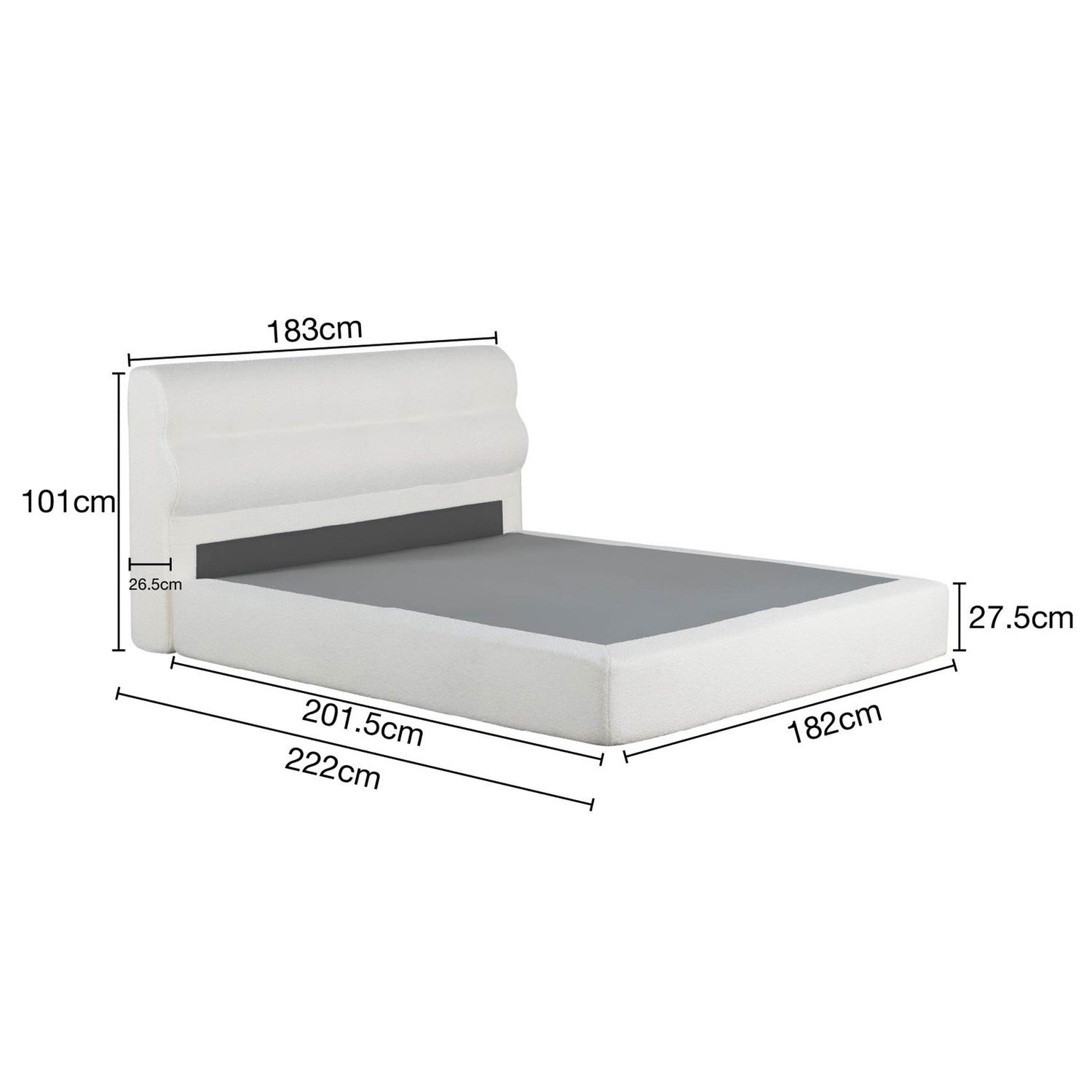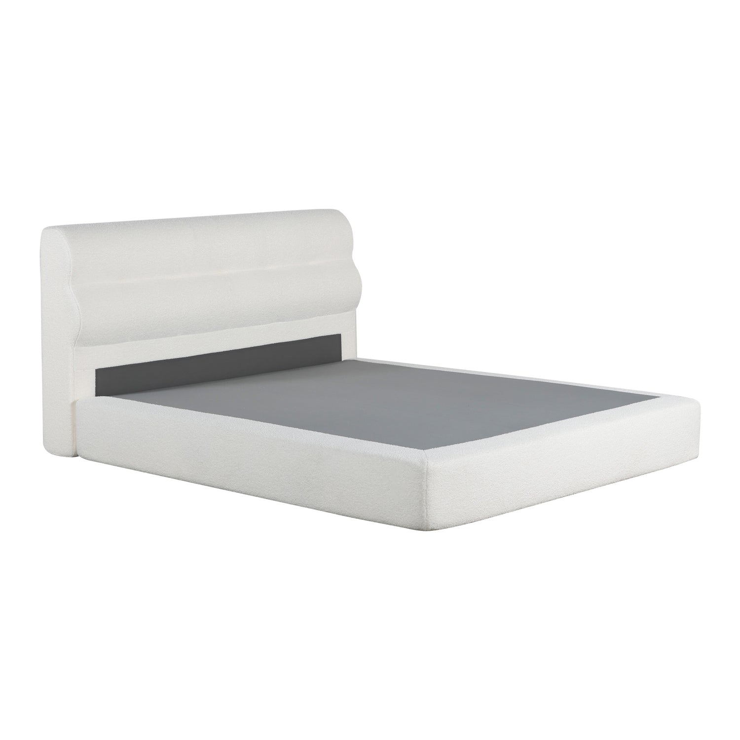 سرير باللون الكريمي الفاتح بتصميم عصري مميز، مثالي لغرف النوم الحديثة بفضل قاعدة قوية وخشب عالي الجودة ومساند رأس مريحة أثناء النوم ولتعطي جمال ورونق مختلف لغرفتك.