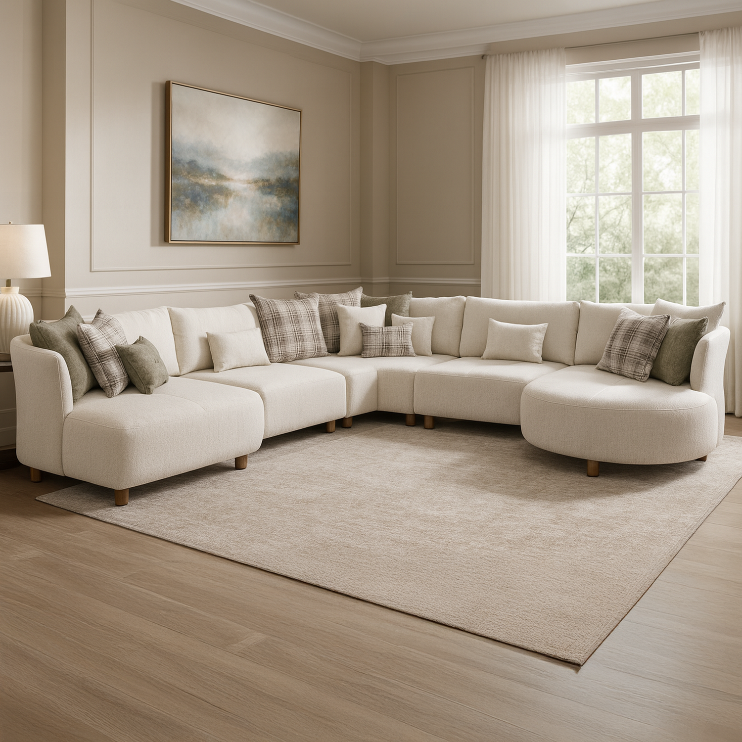 لمسة راقية تُضاف إلى منزلك مع طقم كراون المصمم بعناية ليجمع بين الراحة والفخامة. يتميّز القماش بملمسه الناعم من خامة البوكليه العملية والأنيقة.
