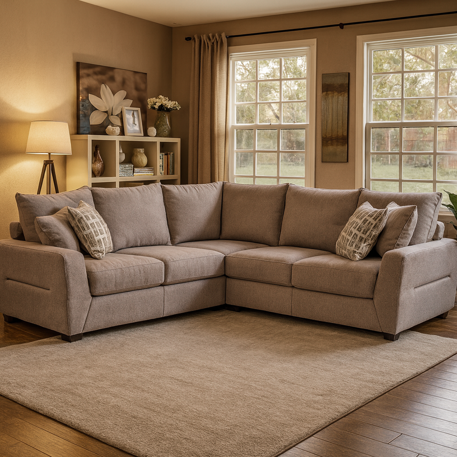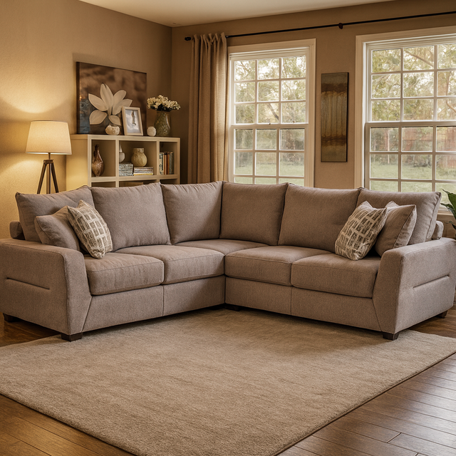 كنبة فاخرة بتصميم عصري أنيق تجمع بين الراحة الراقية والتفاصيل المتقنة. تأتي بتنجيد فاخر بلون “تاوب” هادئ يمنح شعوراً بالدفء والرقي، فيما تضيف الوسائد الصغيرة المنقوشة لمسة فنية تمنح التصميم طابعاً فريداً ومتجدداً.