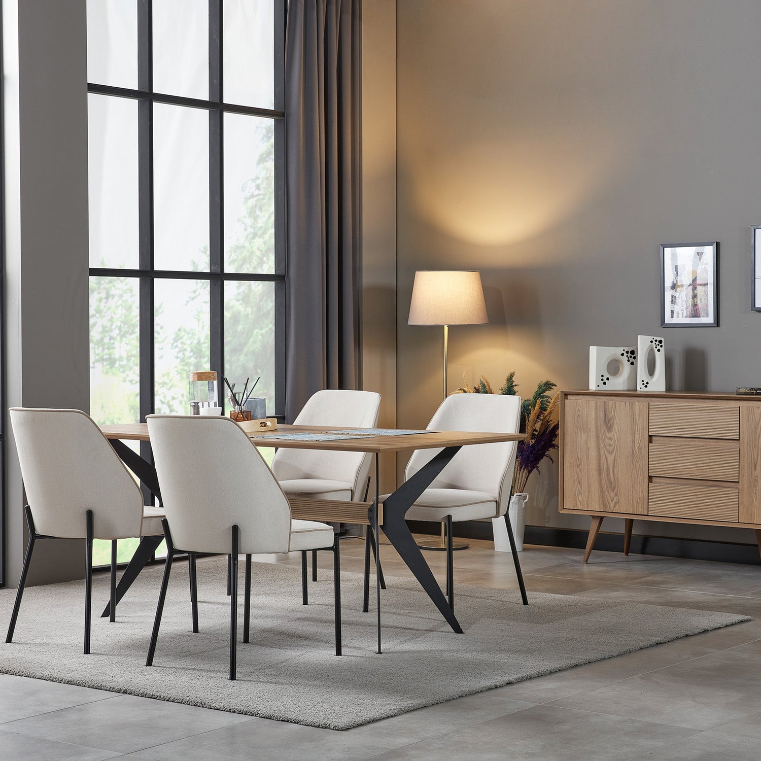 طاولة طعام 6 كراسي تجمع بين الأناقة والراحة. تتميز بتصميم عصري يتناسب مع جميع أساليب الديكور، مما يجعلها الخيار المثالي لمنزل أنيق. توفر الطاولة مساحة واسعة لتناول الطعام مع العائلة أو الأصدقاء، مما يعزز من الأجواء الاجتماعية.