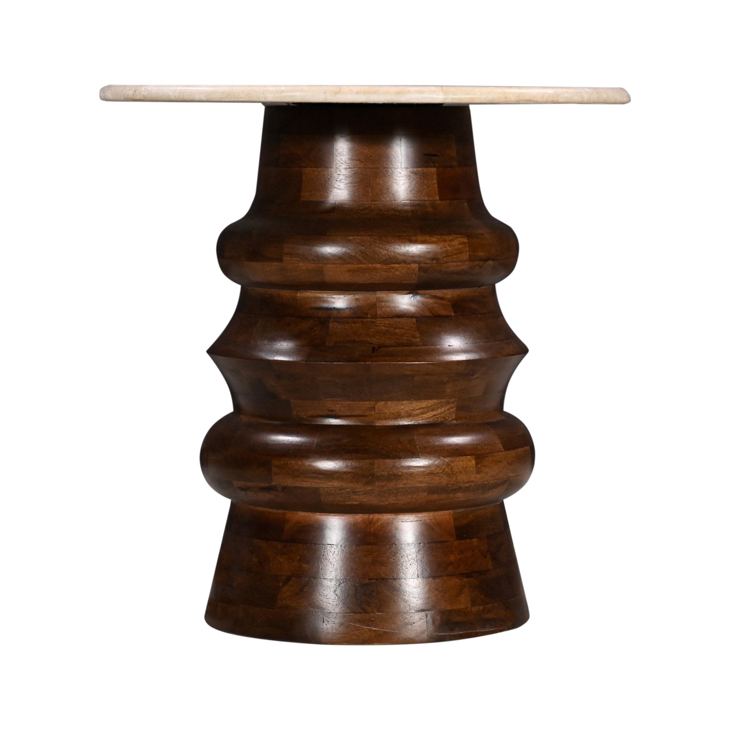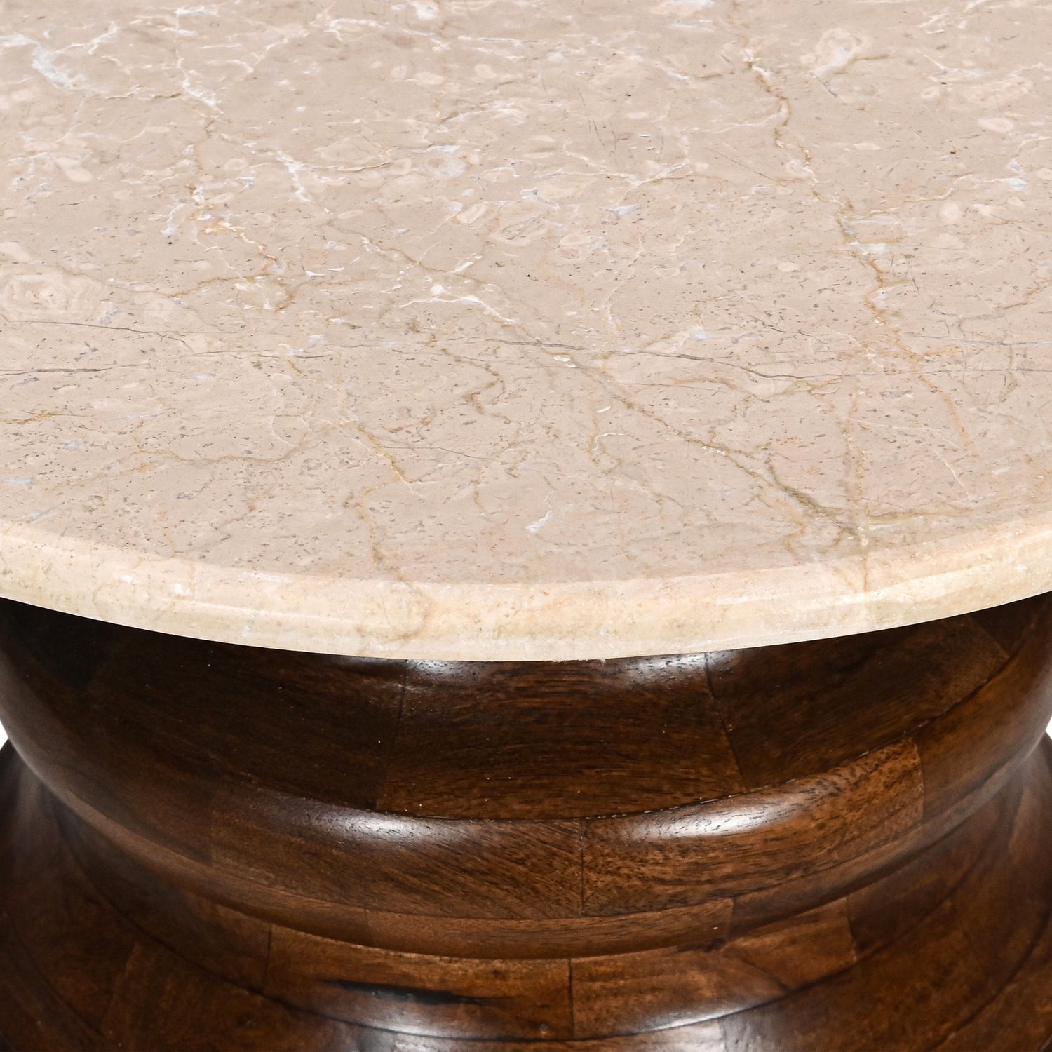 إبداع يجمع بين الحرفية العالية والجاذبية البصرية. طاولة وسطيه ذات سطح رخامي مصنوع من خشب المانجو مع أرجل خشبية متينة ليمنحك قوة وجمالاً في الاستخدام. تفاصيله تضيف لمسة من الفخامة وتجعله قطعة مثالية لديكور منزلك.