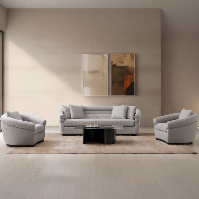 يمنح الطقم تجربة جلوس مريحة تجمع بين الفخامة العملية والتصميم الهادئ، مما يجعله خيارًا مثاليًا لغرف المعيشة الراقية التي تبحث عن الأناقة والراحة في آن واحد