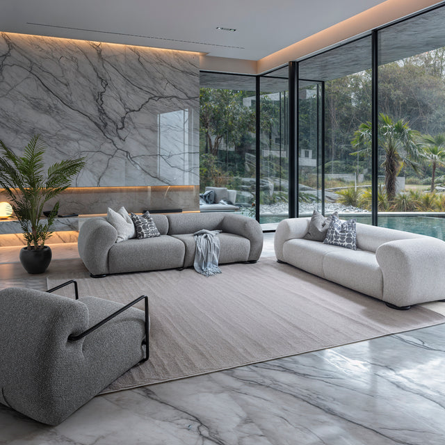 تشكيلة كنب متكاملة مصمّمة للمجالس الرسمية و غرف المعيشة الراقية، تتميّز بقماش منسوج ناعم بلمسة فخمة، بلونين متناسقين، وهيكل مصنوع من خشب الزان التركي الطبيعي، المعروف بقوته ومقاومته للانحناء، وأرجل من الخشب الطبيعي القوي، وحشوة إسفنج عالي الجودة مع طبقة داعمة لراحة الظهر والجلوس لساعات طويلة.