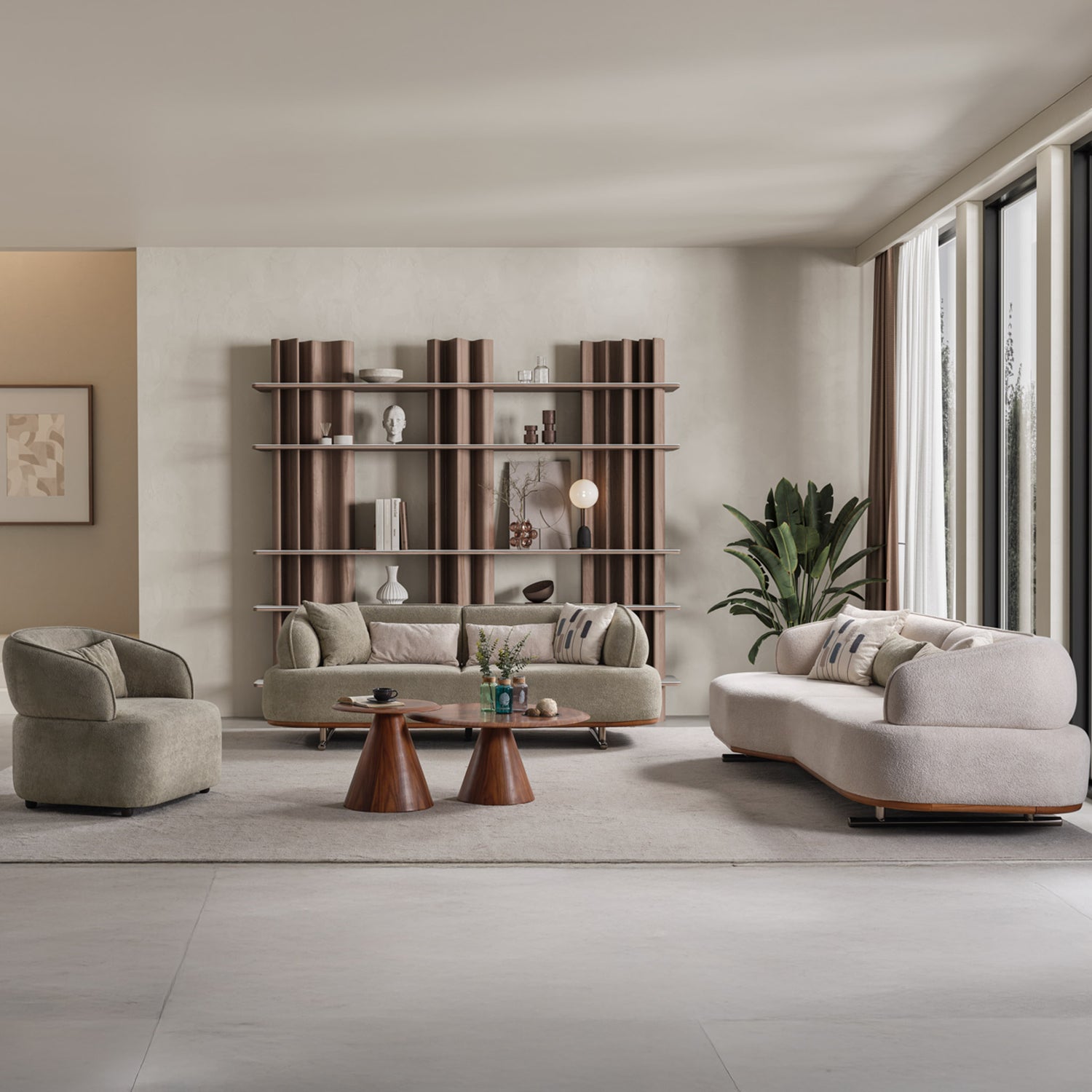 استمتع بتجربة فاخرة مع طقم كنب سيول الكامل الذي يجمع بين الراحة العصرية والتصميم الأنيق. الطقم مكوّن من كرسي مفرد، كنبة ثلاثية، وكنبة رباعية لتناسب جميع المساحات وتلبي احتياجات العائلة والضيوف.