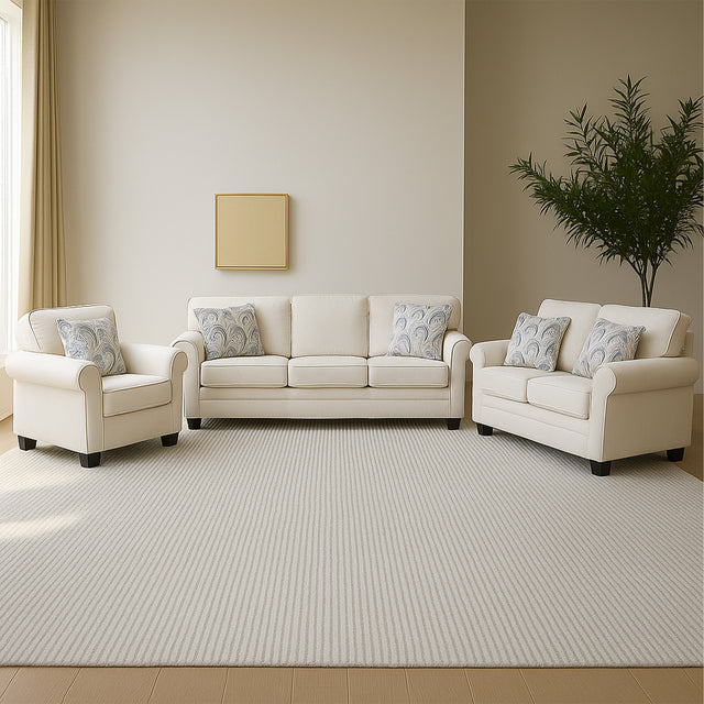 استمتع بتجربة جلوس مريحة وعصرية مع طقم الكنب سكر، المصمم بتوازن مثالي بين الأناقة والعملية. يتميّز بلونه العاجي الناعم وتفاصيل الوسائد المزخرفة، مما يجعله خيارًا رائعًا لأي غرفة معيشة