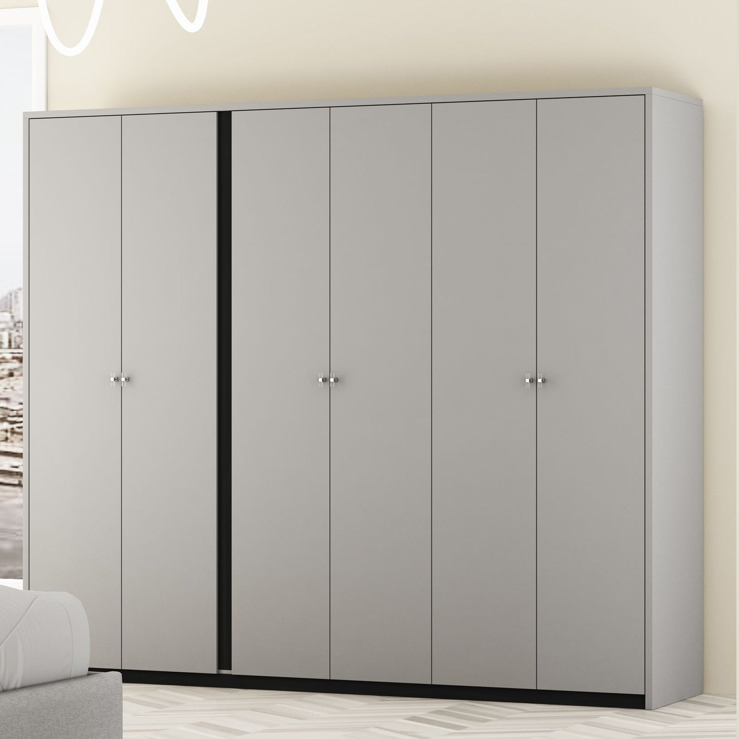 دولاب جراون باللون الرمادي يجمع بين الأناقة والوظيفة، مما يجعله الخيار المثالي لكل منزل يبحث عن التصميم العصري والتخزين الفعال.