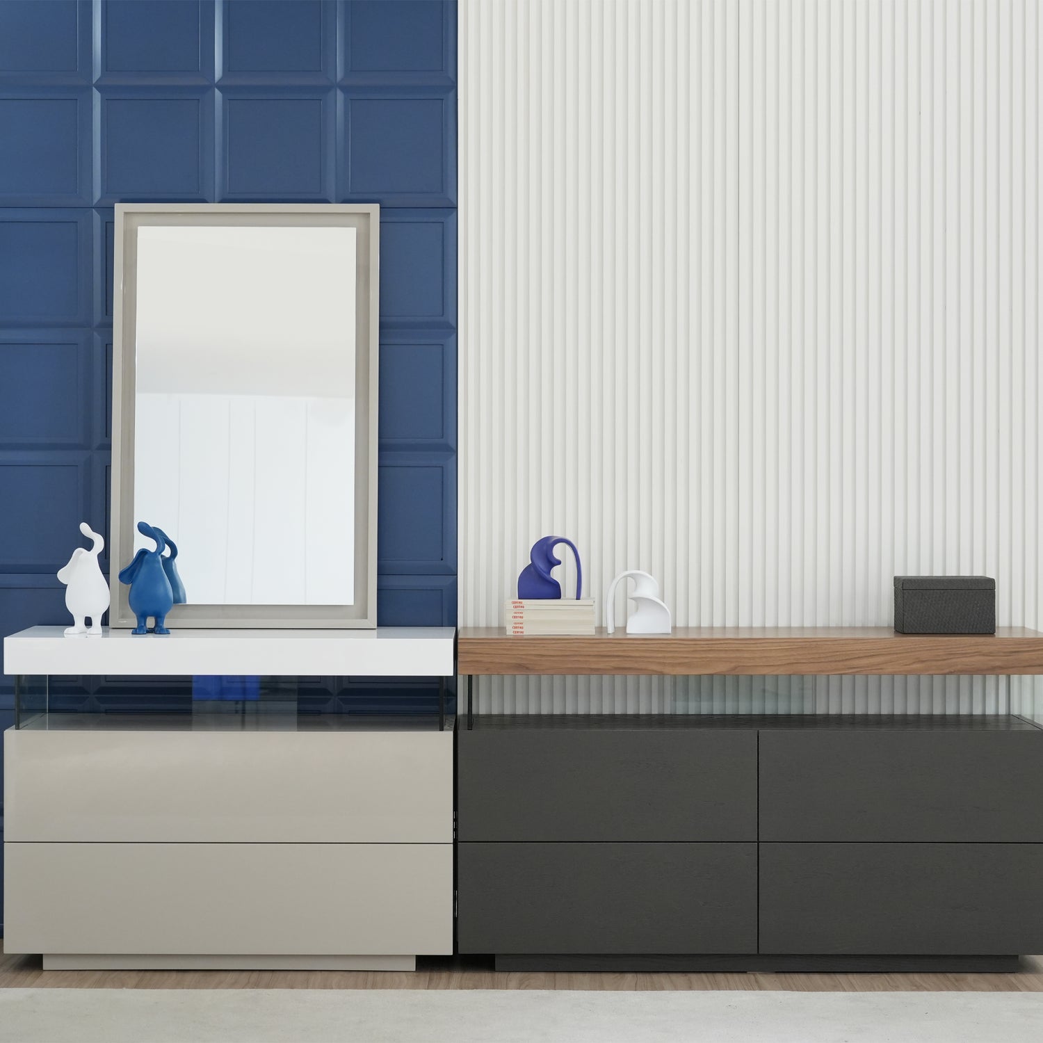 تسريحة تجمع بين الفخامة والبساطة في تصميم متناغم يناسب أجواء الغرف الحديثة. السطح العلوي الزجاجي يمنحها مظهرًا أنيقًا ومشرقًا، بينما الألوان الفاتحة بتشطيب لامع تضيف لمسة من النقاء والفخامة. تحتوي على أدراج بإغلاق ناعم تسهّل التنظيم وتُبرز الاهتمام بالتفاصيل. تصميمها العملي يجعلها مثالية للاستخدام اليومي وتكمل ديكور الغرفة برقي وأناقة متناهية.