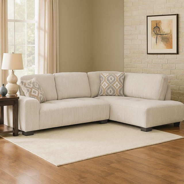 طقم فاخر متعدد القطع بلمسة لونية رملية أنيقة مع وسائد منقوشة لتعطي طابعًا أكثر تميّزًا. يوفر مساحة جلوس واسعة ومريحة بفضل تصميمه كركنية وتنجيد عالي الجودة وهيكل خشبي قوي يضمن المتانة ويدوم طويلًا.