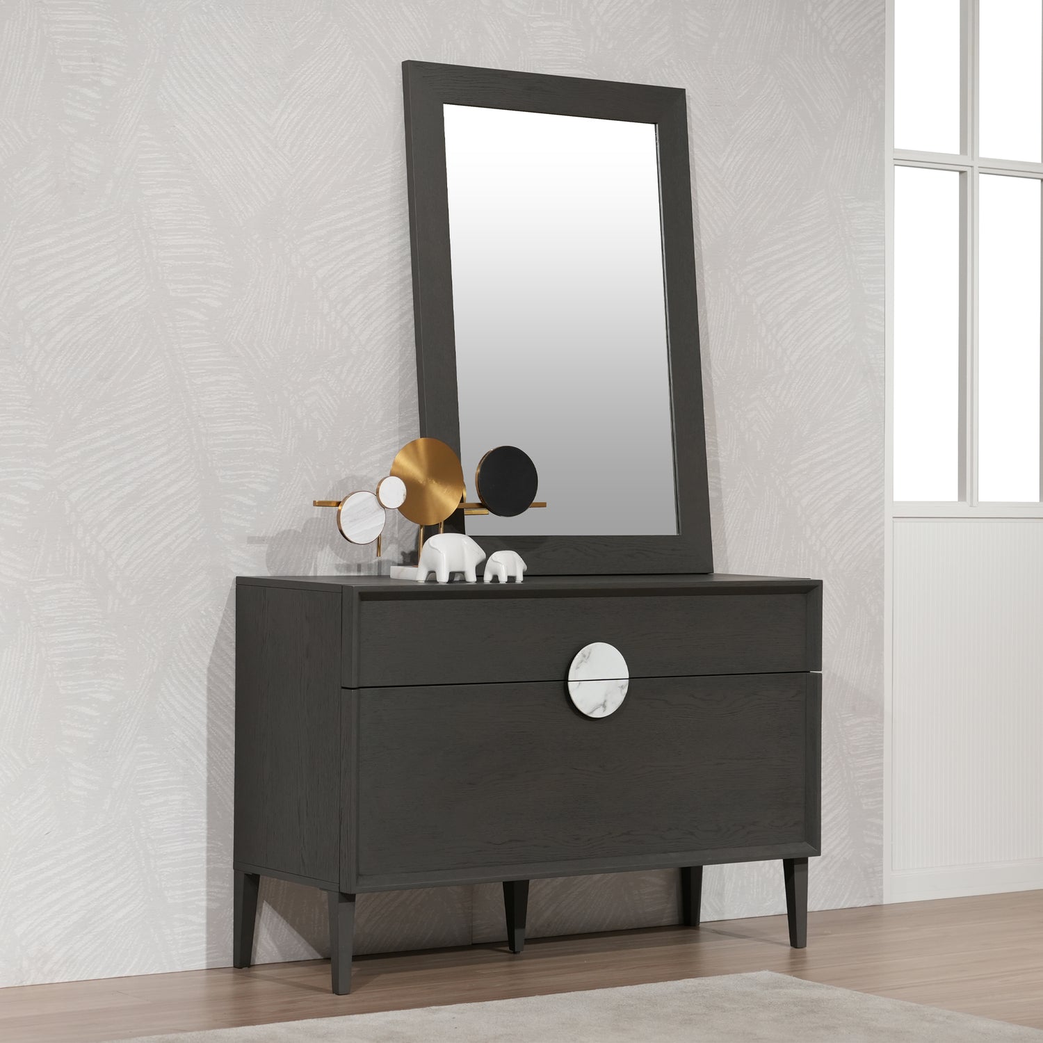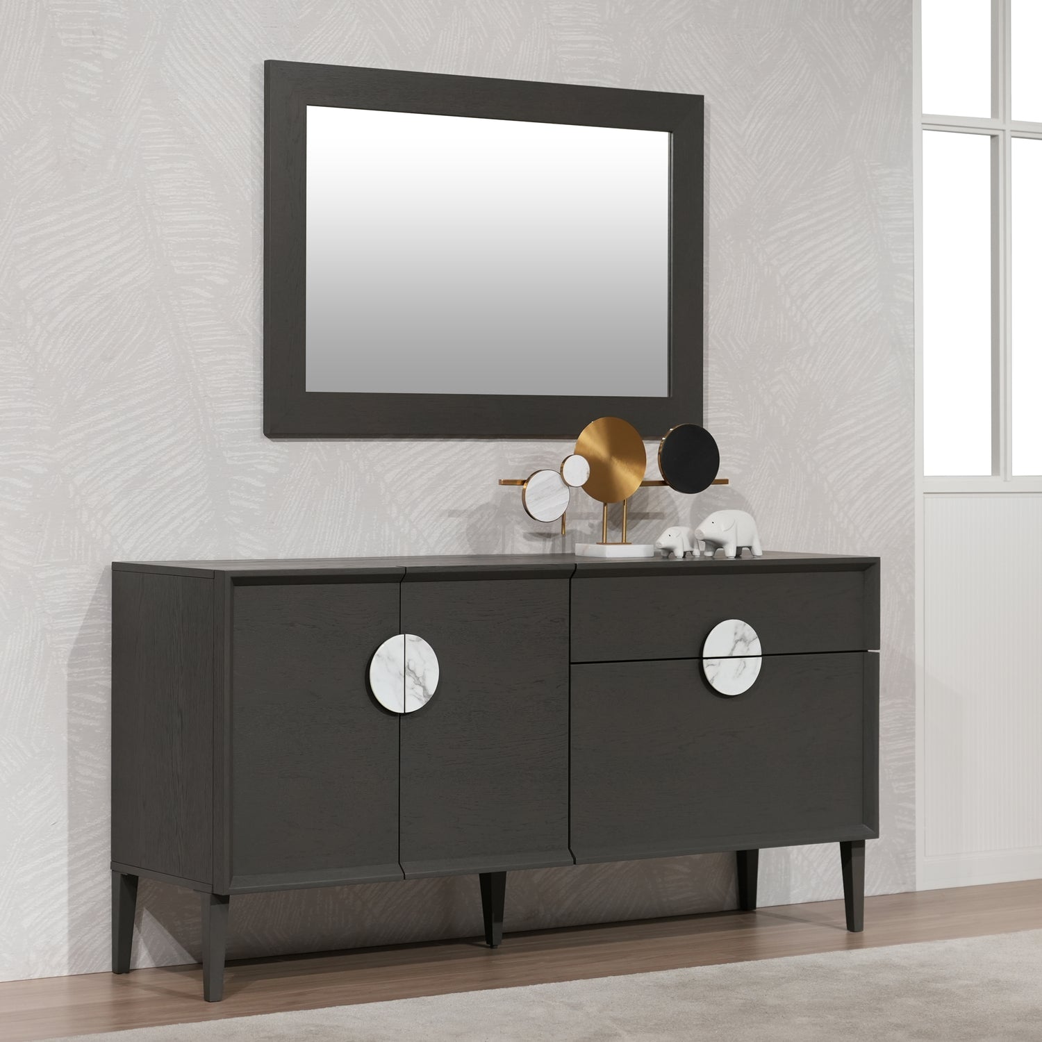 تسريحة فخمة مصنوعة من خشب البلوط الطبيعي مع واجهات رخامية أنيقة تمنحها مظهرًا فريدًا وراقيًا. تصميمها العصري وخاماتها الفاخرة يجعلها قطعة مركزية تلفت الأنظار في الغرفة. توفر مساحة تخزين واسعة بفضل الأدراج المتعددة بإغلاق ناعم، وتُبرز الانسجام بين الخشب والرخام بتوازن مثالي.