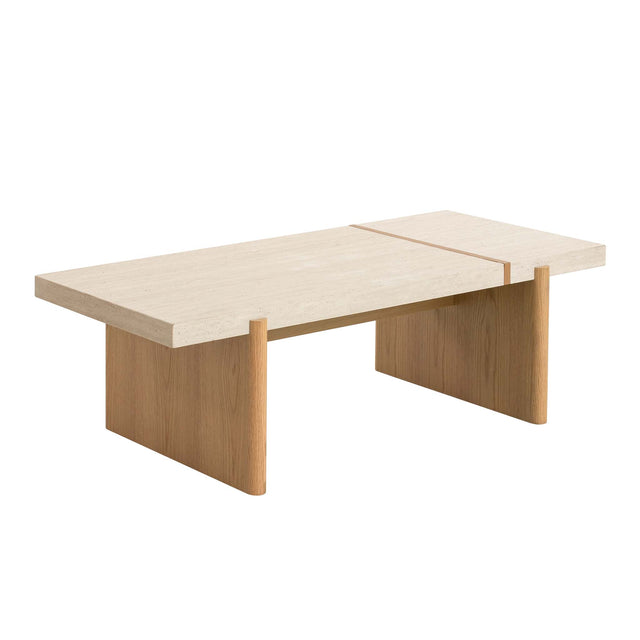 طاولة قهوة راقية تجمع بين الخشب الطبيعي والحجر المصقول في تصميم مميز. صُنعت بعناية لتكون محوراً أنيقاً في غرفة المعيشة، حيث ينسجم ملمس الحجر مع دفء الخشب بطريقة راقية. تُبرز الخطوط البسيطة والتشطيب اللامع جودة الصنع وروح الفخامة في كل زاوية.